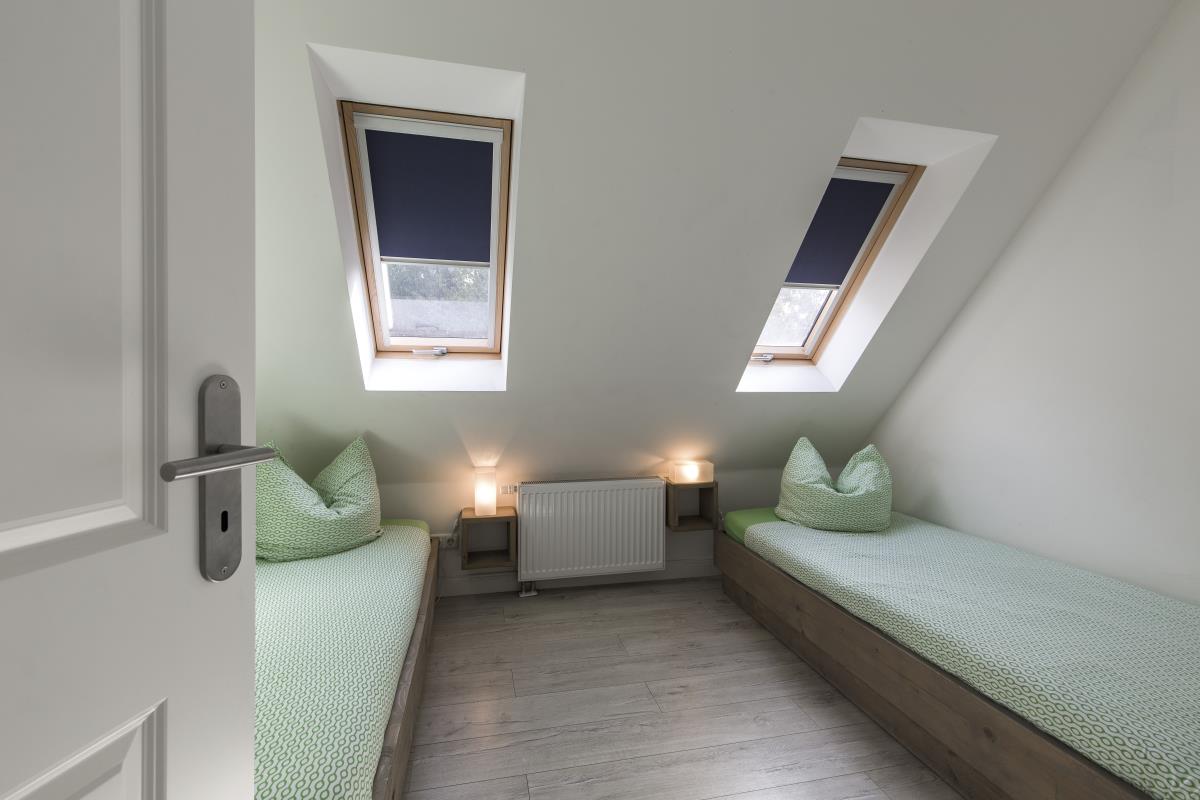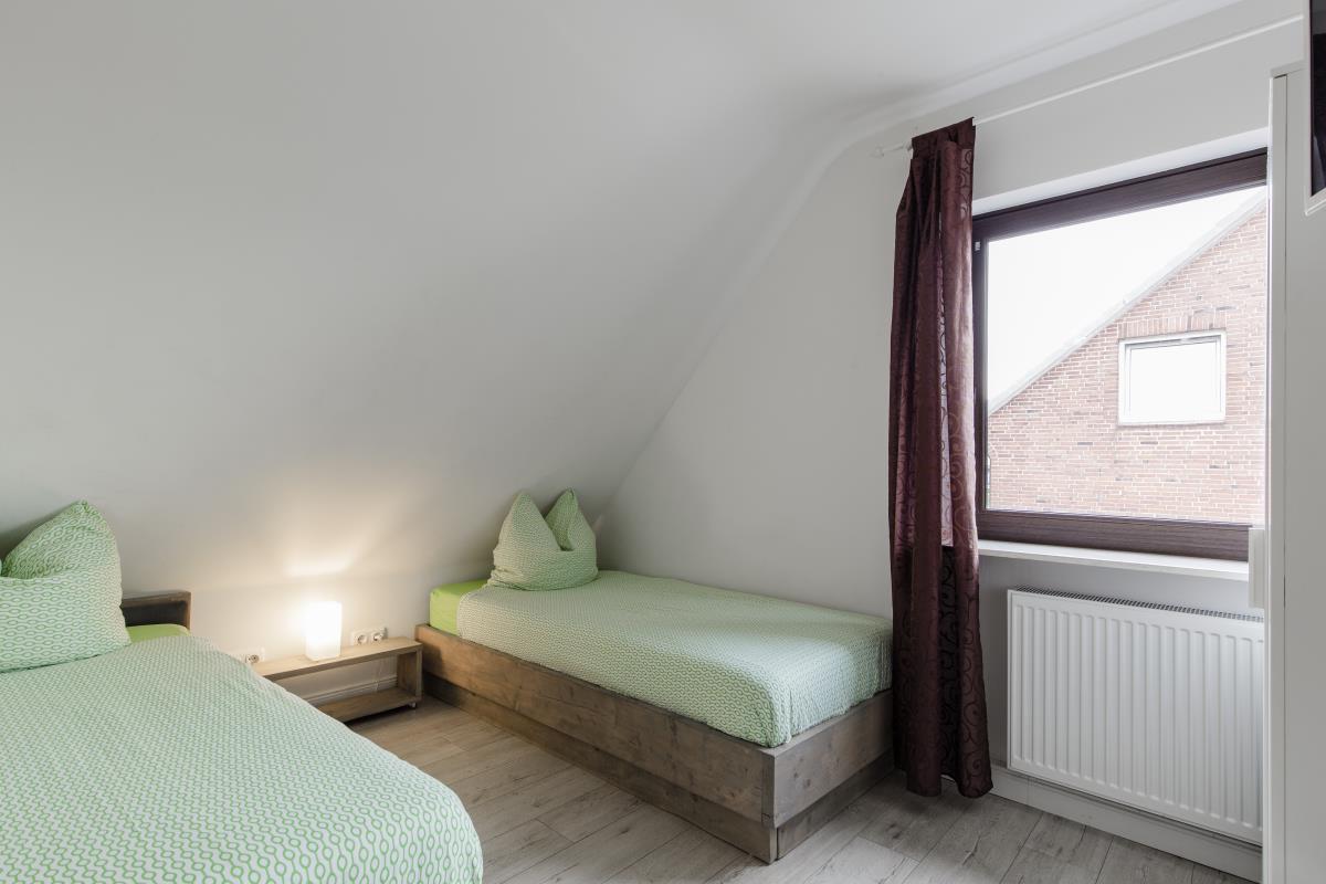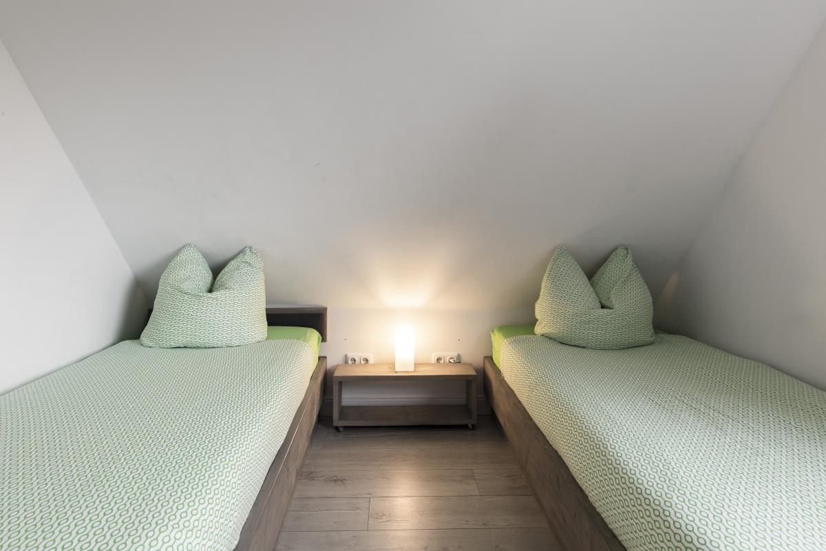 Diese großzügige Ferienwohnung bietet zwei separate Schlafzimmer, jeweils mit zwei komfortablen Einzelbetten. Eines der Schlafzimmer verfügt zusätzlich über einen eigenen Balkon, auf dem Sie den Tag entspannt ausklingen lassen können.