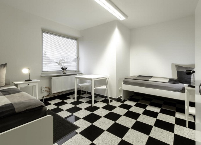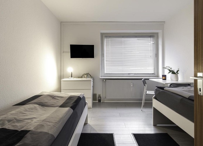 Diese helle und großzügig geschnittene 4-Zimmer-Wohnung bietet komfortablen Wohnraum für bis zu 8 Personen – perfekt für (Monteur-)Gruppen, große Familien oder berufliche Aufenthalte. Es gibt kein Wohnzimmer.