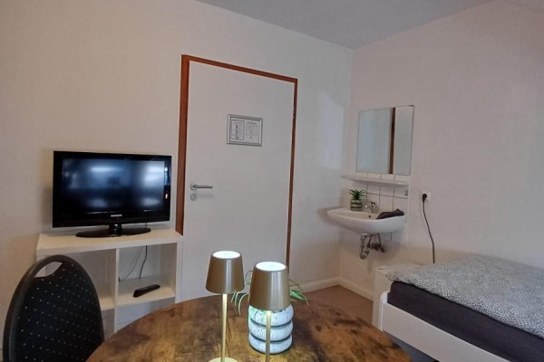 Im vorderen Teil des Grundstücks finden Sie eine große Terrasse. Eine Grill-Ecke steht für Sie auch zur Verfügung. Im EG ist die große Gemeinschaftsküche. Diese ist mit allem ausgestattet, was der Selbst-Versorger braucht. Vom Backofen mit Ceran-Kochfeld über einen Geschirrspüler, bis hin zu mehreren Kühlschränken ist alles vorhanden. Die große Wohnung im Souterrain hat noch zusätzlich einen großen Garten mit überdachter Grillecke, im hinteren Bereich des Grundstücks.